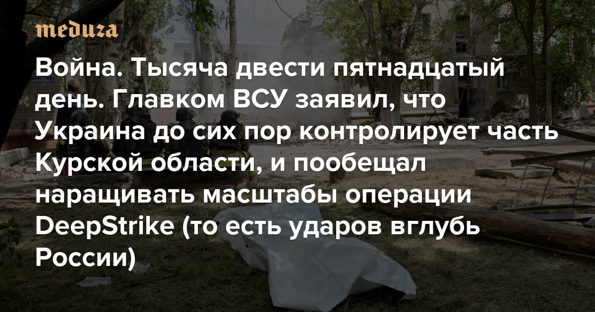Война Тысяча двести пятнадцатый день. Главком ВСУ заявил, что Украина до сих пор контролирует часть Курской области, и пообещал наращивать масштабы ударов вглубь России