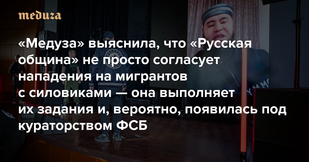 Нишевый проект конторы «Медуза» выяснила, что «Русская община» не просто согласует нападения на мигрантов с силовиками — она выполняет их задания и, вероятно, появилась под кураторством ФСБ