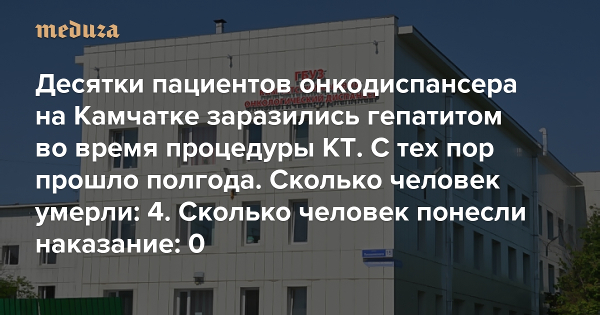 Десятки пациентов онкодиспансера на Камчатке заразились гепатитом во время процедуры КТ. С тех пор прошло полгода Сколько человек умерли: 4. Сколько человек понесли наказание: 0