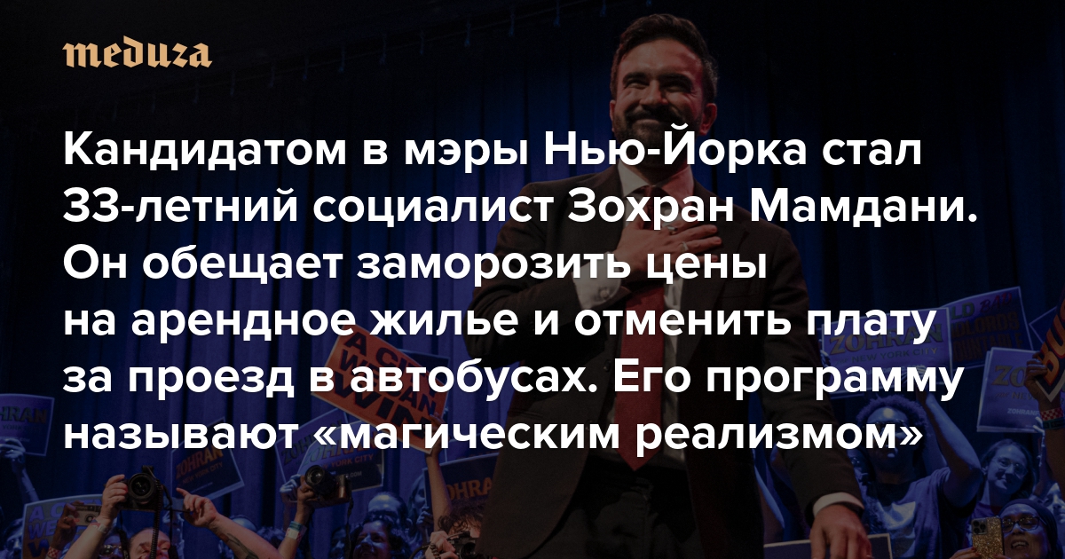 Кандидатом в мэры Нью-Йорка стал 33-летний социалист Зохран Мамдани Он обещает заморозить цены на арендное жилье и отменить плату за проезд в автобусах. Его программу называют «магическим реализмом»