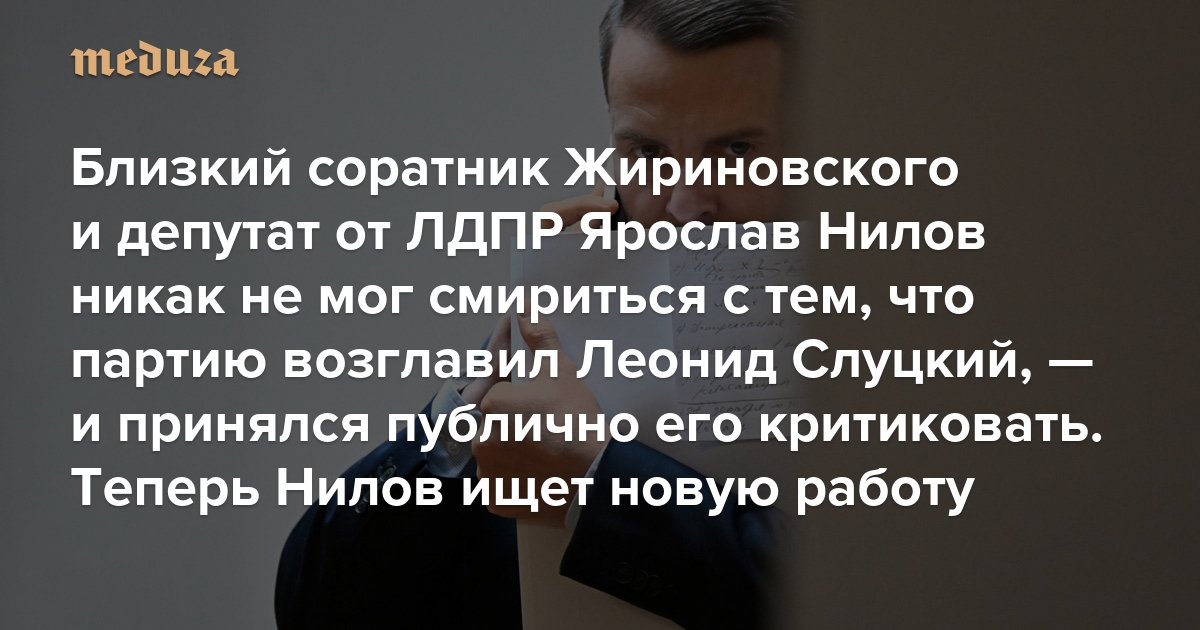 Близкий соратник Жириновского и депутат от ЛДПР Ярослав Нилов никак не мог смириться с тем, что партию возглавил Леонид Слуцкий, — и принялся публично его критиковать Теперь Нилов ищет новую работу
