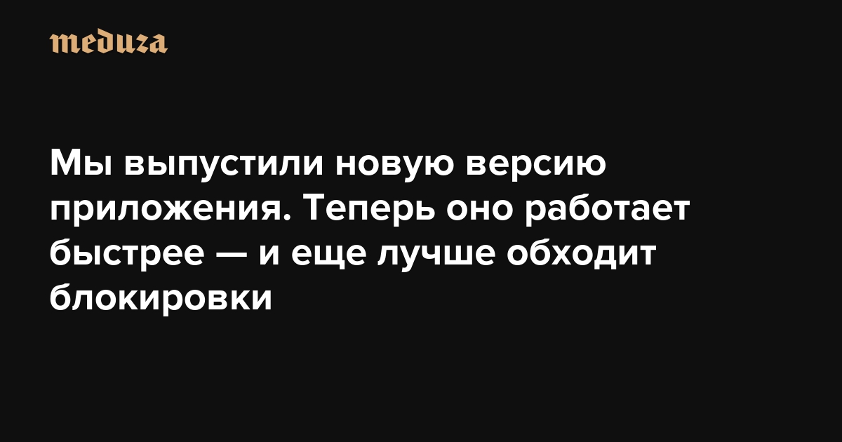Вы наверняка знаете, что наше приложение умеет обходить блокировки, благодаря чему в России «Медузу» можно читать без VPN. Власти регулярно пытаются нарушить его работу, но и мы постоянно его совершенствуем. Встречайте новую версию приложения, в которой количество ошибок соединения уменьшилось на 70%.