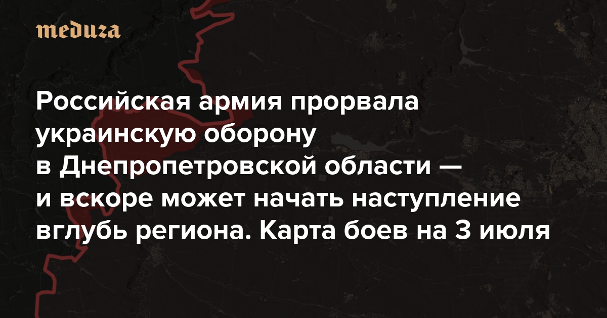 Российская армия прорвала украинскую оборону в Днепропетровской области — и вскоре может начать наступление вглубь региона. И это не единственная угроза для ВСУ Карта боев на 3 июля