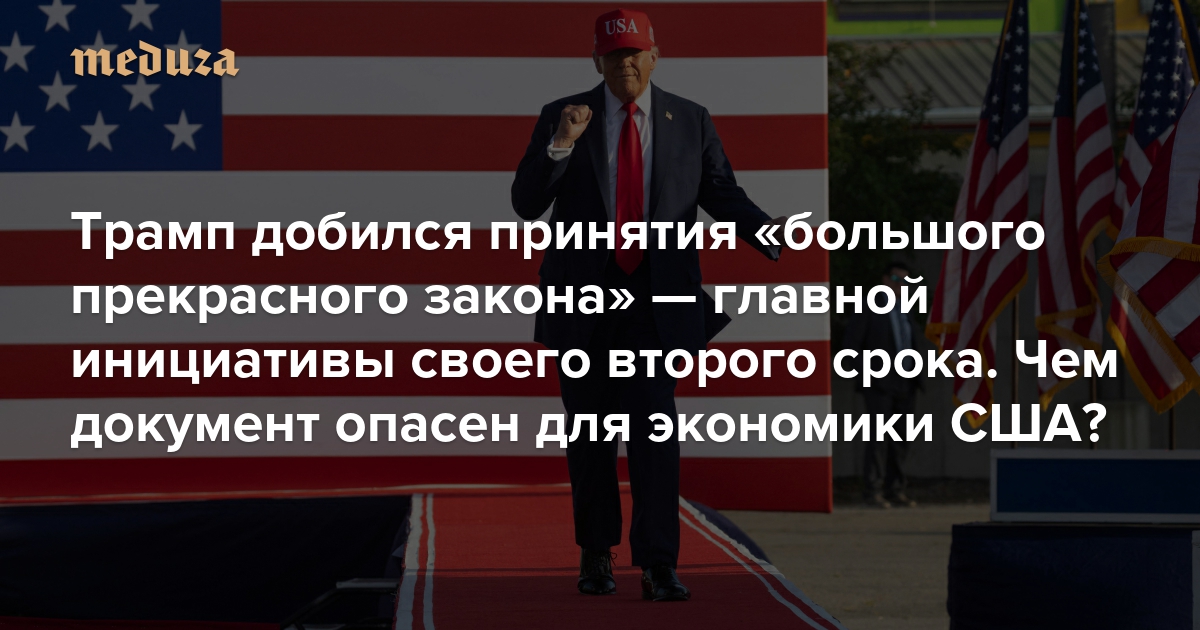 Трамп добился принятия «большого прекрасного закона» — главной инициативы своего второго срока. Чем документ опасен для экономики США? И как он сделает богатых американцев богаче, а бедных — беднее?