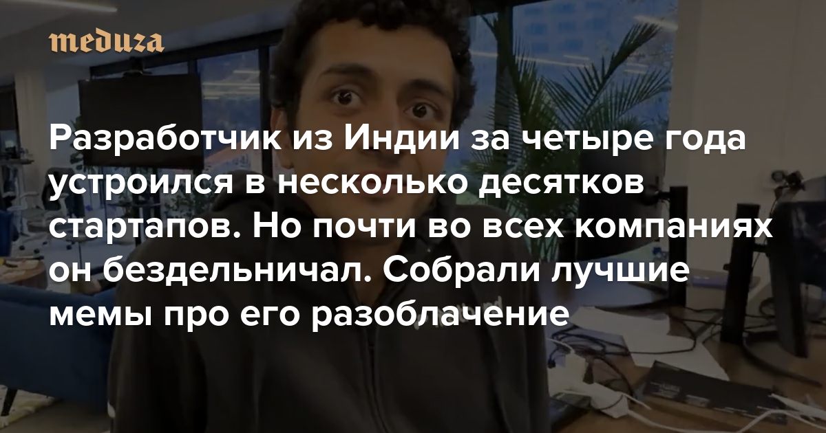 Разработчик из Индии за четыре года устроился в несколько десятков стартапов. Но почти во всех компаниях он бездельничал Собрали лучшие мемы про его разоблачение