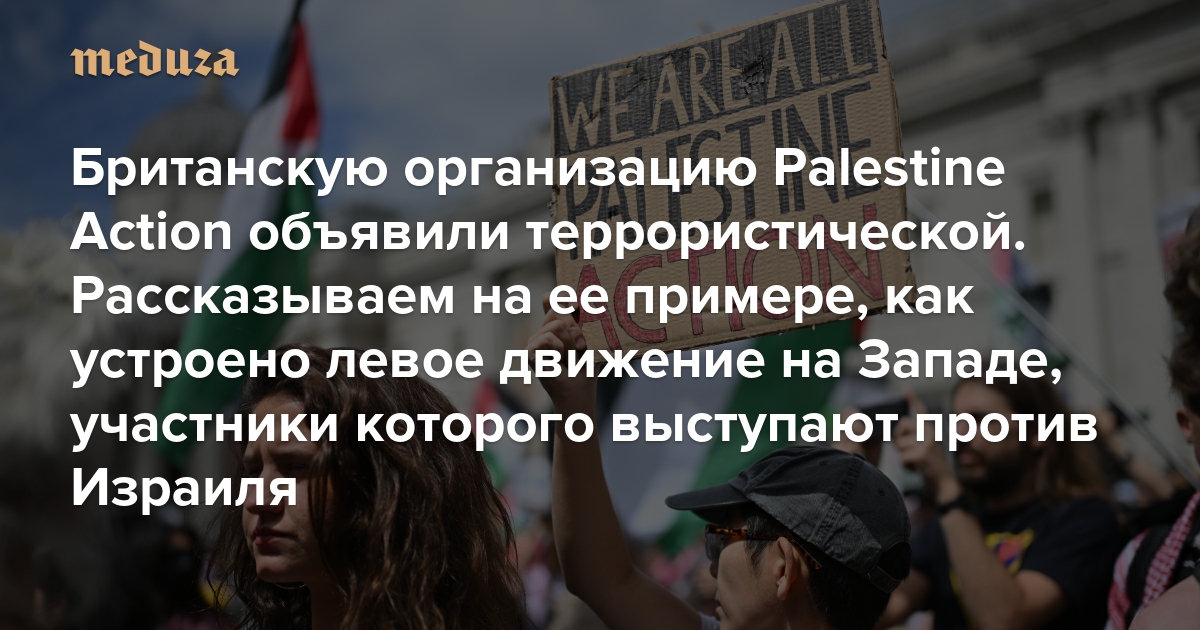 В Великобритании объявили террористической организацию Palestine Action, которая на протяжении пяти лет методами «прямого действия» боролась против британской военной поддержки Израиля. Это довольно типичная западная леворадикальная организация, которая вдруг оказалась в нетипичном положении. «Медуза» рассказывает о ней подробнее, пытаясь что-то понять о многих других аналогичных организациях.