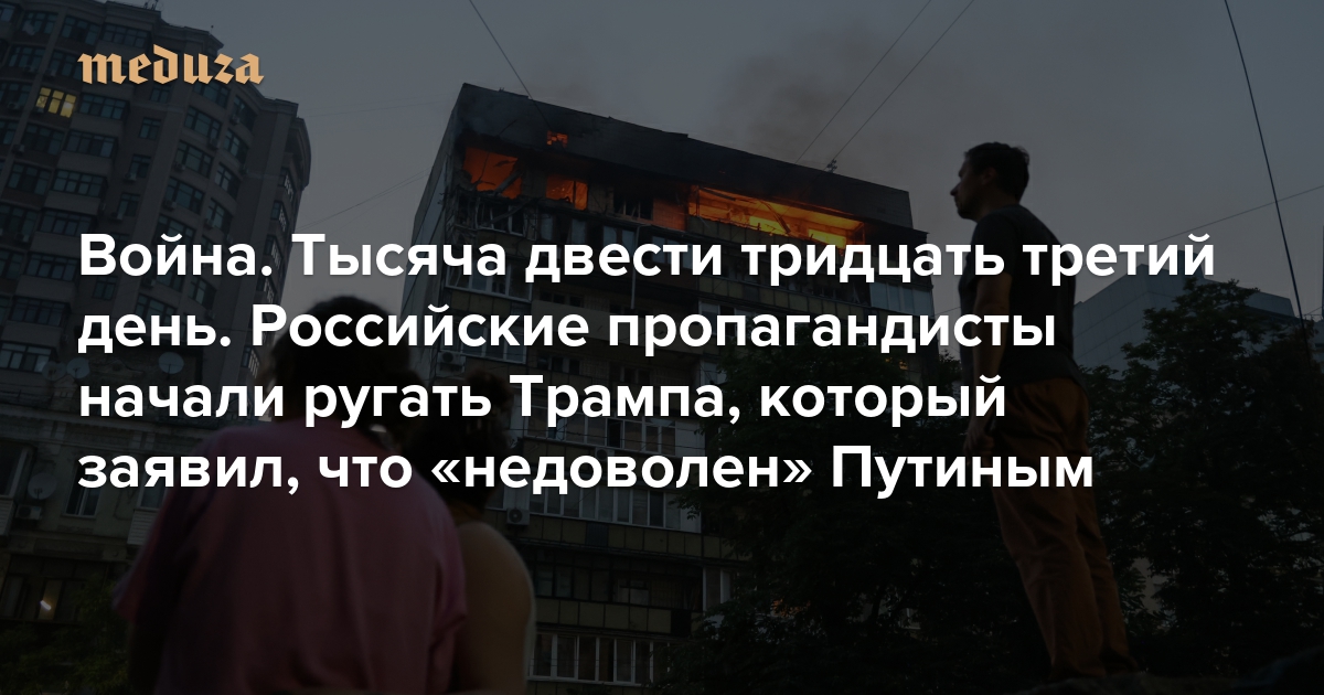 Война Тысяча двести тридцать третий день. Российские пропагандисты начали ругать Трампа, который заявил, что «недоволен» Путиным