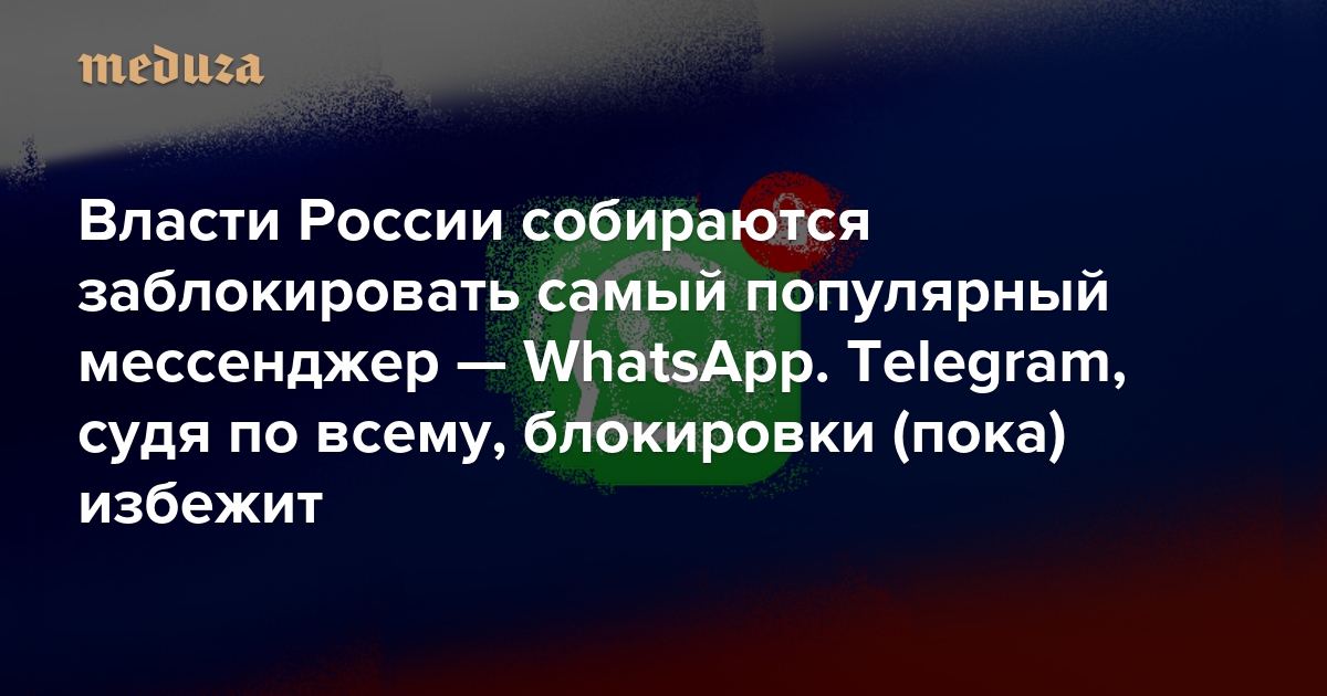 Сроки блокировки WhatsApp источники «Медузы» назвать затрудняются; один из них вовсе сомневается, что мессенджер удастся заблокировать, «не положив кучу всего вокруг».