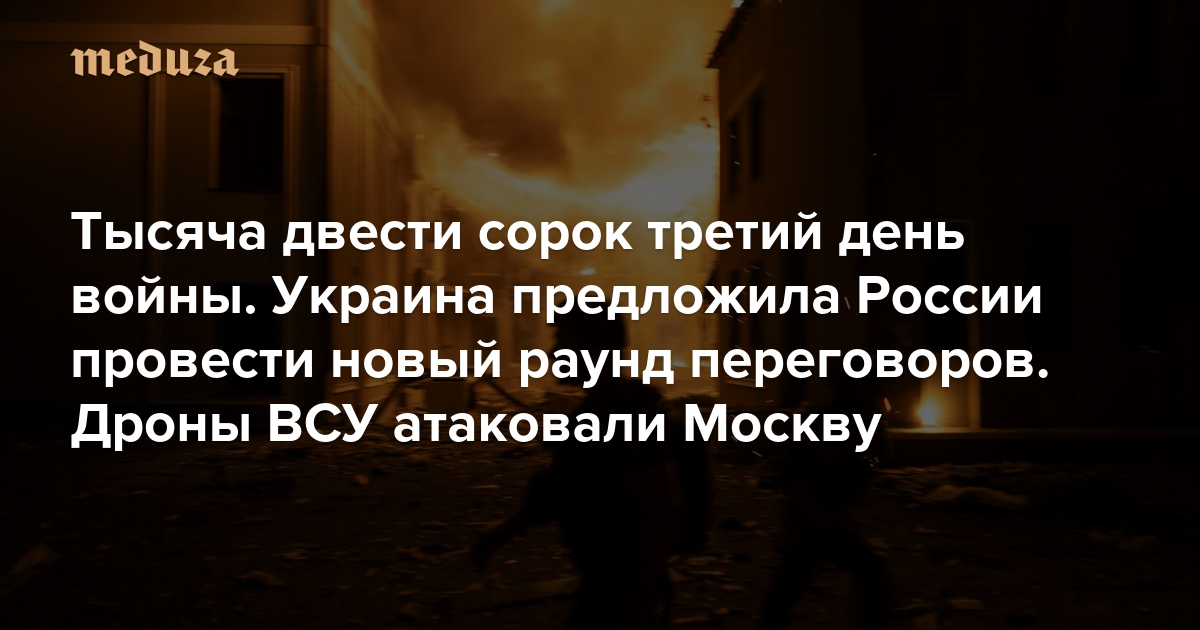 Война Тысяча двести сорок третий день. Украина предложила России провести новый раунд переговоров. Дроны ВСУ атаковали Москву