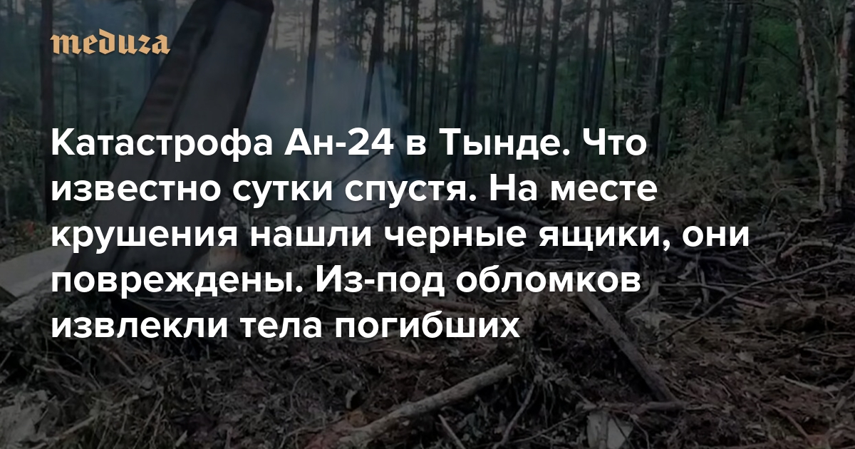 Катастрофа Ан-24 в Тынде. Что известно сутки спустя На месте крушения нашли черные ящики, они повреждены. Из-под обломков извлекли тела погибших