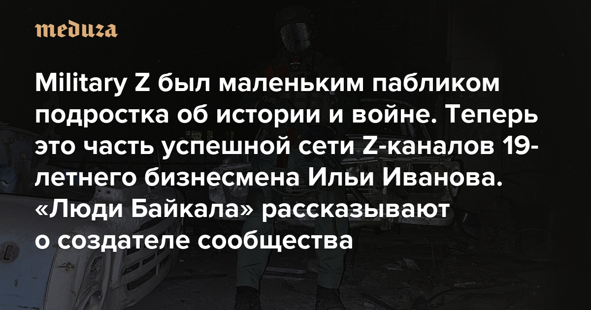 Military Z был маленьким пабликом подростка об истории и войне. Теперь это часть успешной сети Z-каналов 19-летнего бизнесмена Ильи Иванова «Люди Байкала» рассказывают о создателе и новом владельце одного из самых злых провоенных сообществ