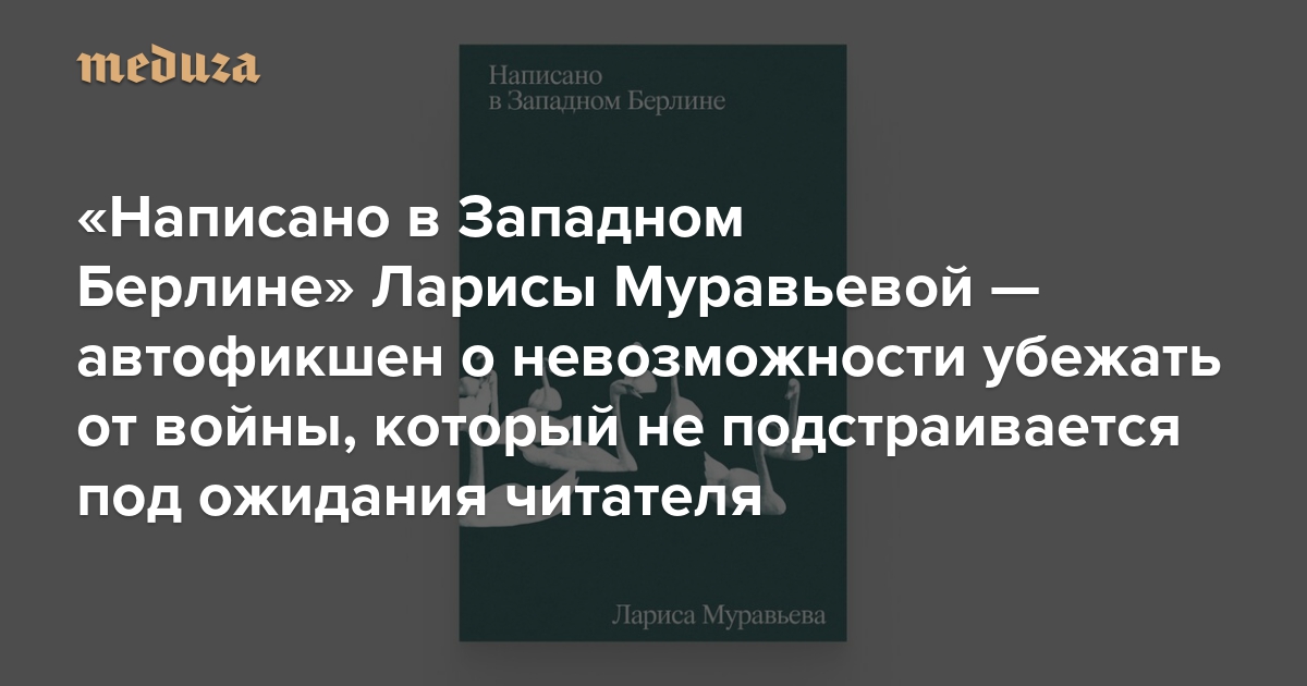 «Написано в Западном Берлине» Ларисы Муравьевой — автофикшен о невозможности убежать от войны, который не подстраивается под ожидания читателя Мысли автогероини блуждают по Петербургу, Тель-Авиву и Берлину — но нигде не находят надежды