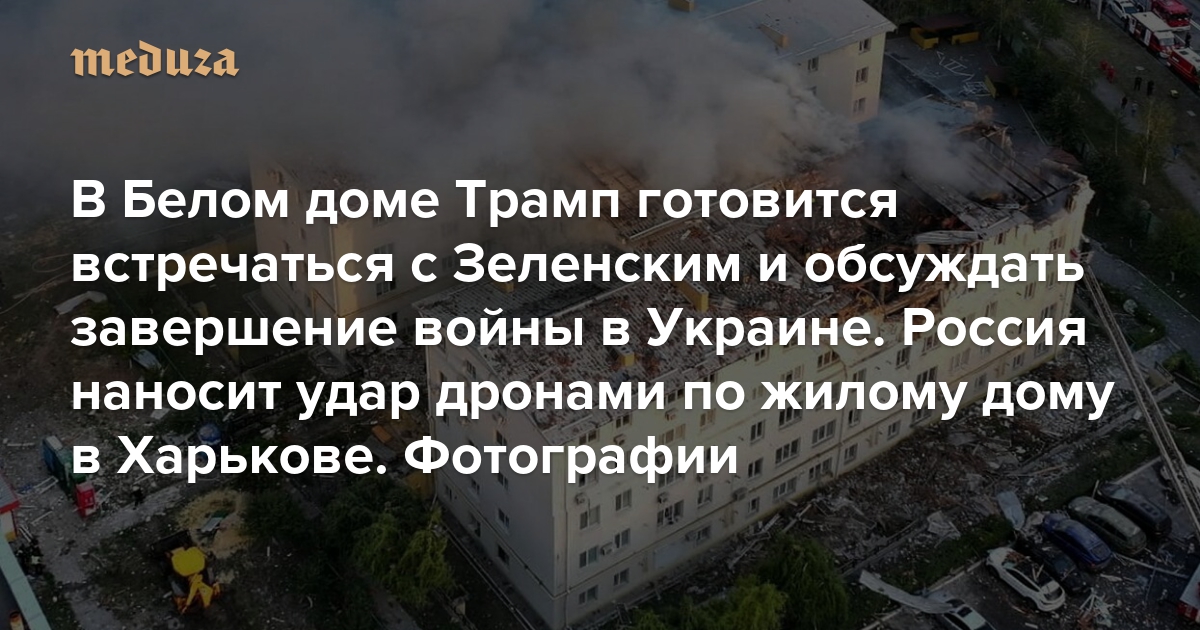 В Белом доме Трамп готовится встречаться с Зеленским и обсуждать завершение войны в Украине. Россия наносит удар дронами по жилому дому в Харькове Фотографии