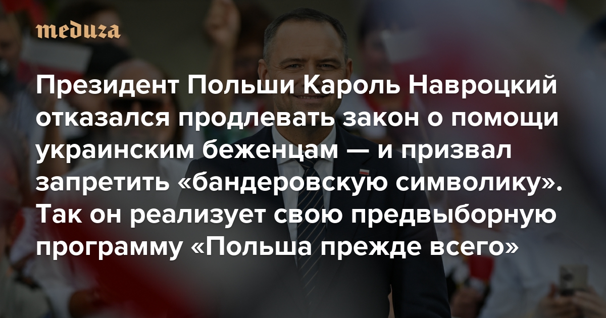 Новый президент Польши Кароль Навроцкий отказался продлевать закон о помощи украинским беженцам — и призвал запретить «бандеровскую символику» Он избрался под лозунгом «Польша прежде всего» и теперь реализует свою предвыборную программу