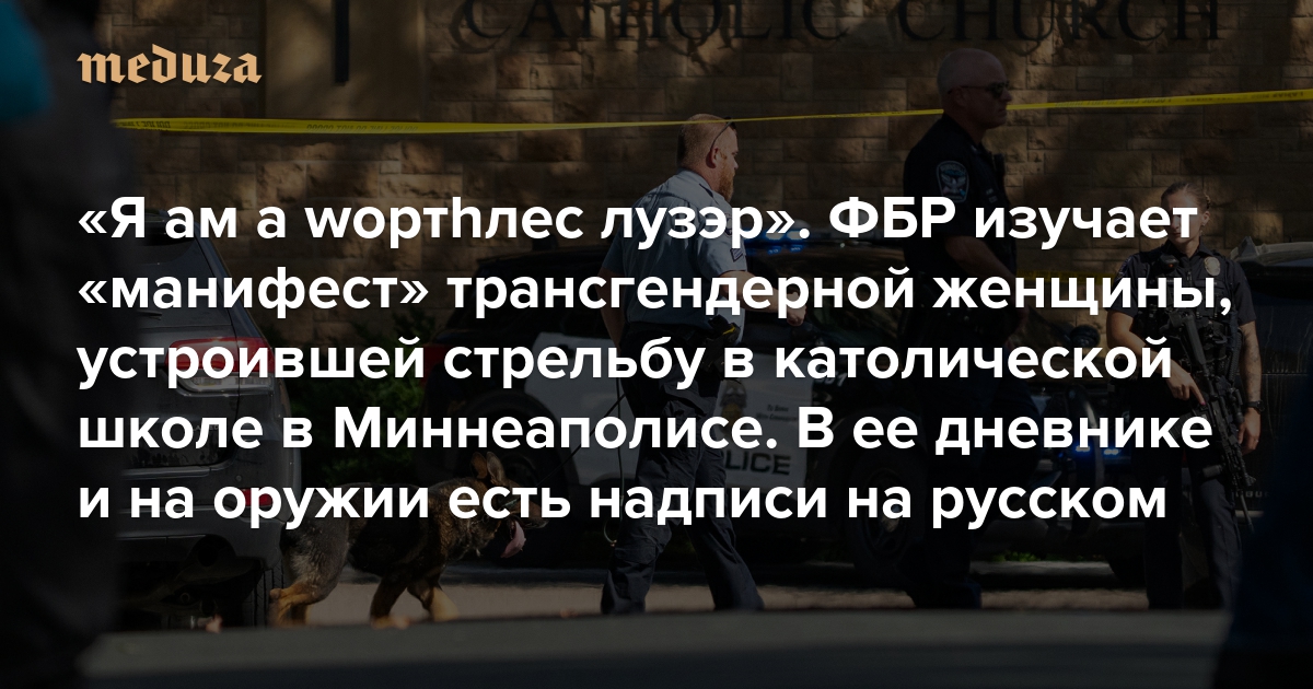 «Я ам а wортhлес лузэр» Полиция и ФБР изучают «манифест» трансгендерной женщины, устроившей стрельбу в католической школе в Миннеаполисе. В ее дневнике и на оружии остались надписи на русском