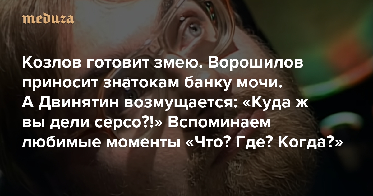 Козлов готовит змею. Ворошилов приносит знатокам баночку мочи. А Двинятин возмущается: «Куда ж вы дели серсо?!» В честь 50-летия «Что? Где? Когда?» вспоминаем свои любимые моменты культовой игры