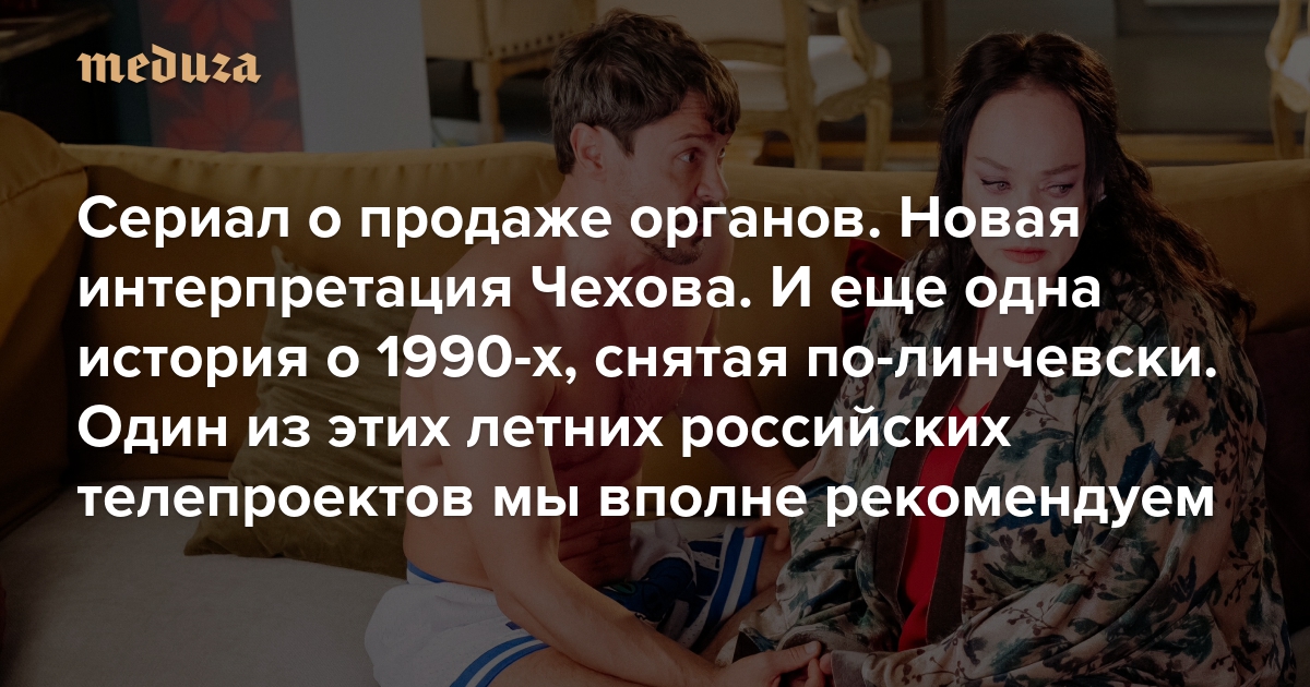 Сериал о продаже органов. Новая интерпретация Чехова (с Ларисой Гузеевой). И еще одна история о 1990-х, снятая по-линчевски Один из этих летних российских телепроектов мы вполне рекомендуем. Угадайте, какой
