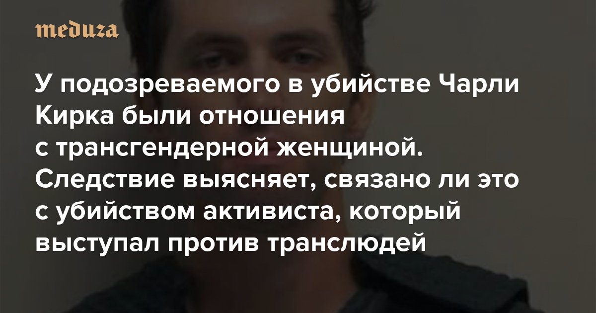 У подозреваемого в убийстве Чарли Кирка были отношения с трансгендерной женщиной Следствие выясняет, связано ли это с убийством консервативного активиста, который выступал против транслюдей