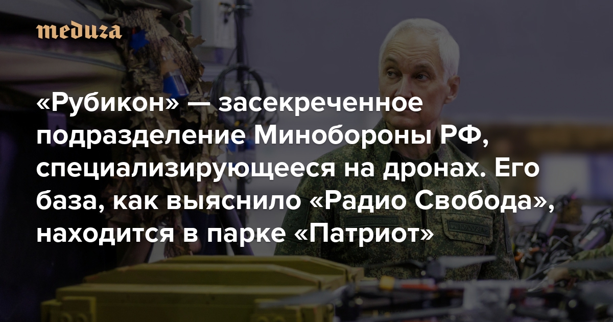 «Рубикон» — засекреченное подразделение Минобороны РФ, специализирующееся на дронах. Его база, как выяснило «Радио Свобода», находится в парке «Патриот» Узнать это помог репортаж Владимира Соловьева