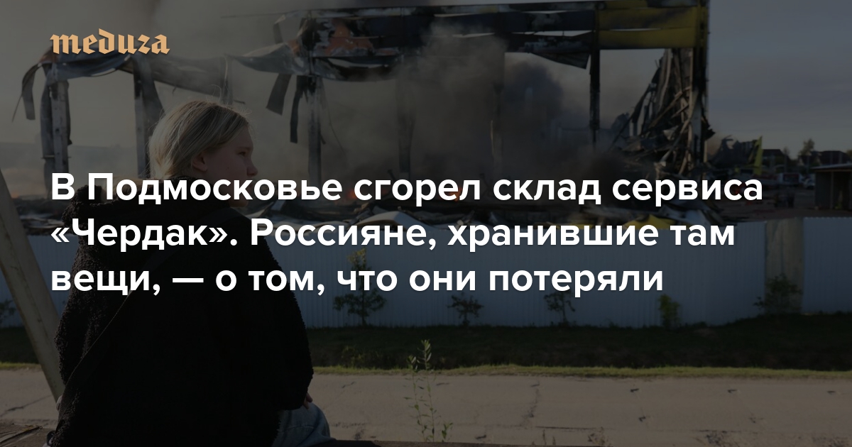 На подмосковном складе сервиса хранения вещей «Чердак» 10 сентября произошел пожар. Огонь охватил 12 тысяч квадратных метров, МЧС пришлось привлечь к тушению два вертолета. Компания рассказала своим клиентам о случившемся только через два дня — утром 13 сентября они получили сообщения о том, что их вещи «были безвозвратно утеряны». «В огне были вещи клиентов, а вместе с ними и наши собственные: мои личные вещи, вещи моей семьи, друзей и даже целые бизнесы, которые доверили нам хранение. Мы потеряли все, что строили восемь лет, и мне очень жаль», — писал один из основателей «Чердака», Мердан Дурдымурадов. Кооператив независимых журналистов «Берег» узнал у клиентов «Чердака», чего они лишились — и что чувствуют. «Медуза» публикует этот материал целиком.