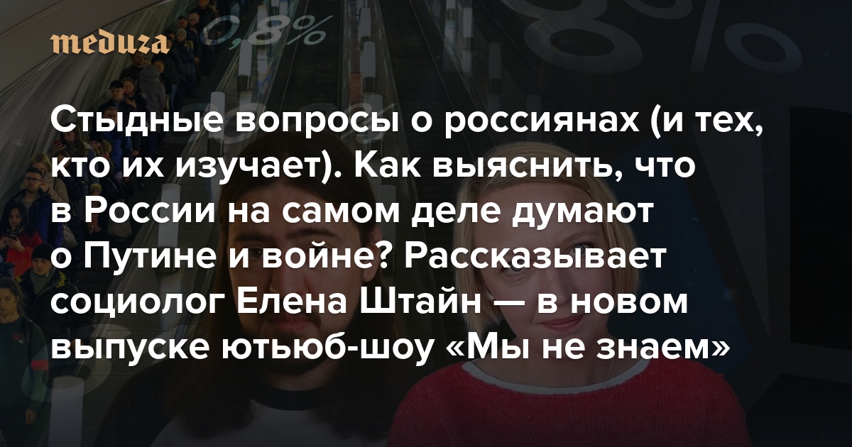 Стыдные вопросы о россиянах (и тех, кто их изучает) Как выяснить, что в России на самом деле думают о Путине и войне? Рассказывает социолог Елена Штайн — в новом выпуске ютьюб-шоу «Мы не знаем»