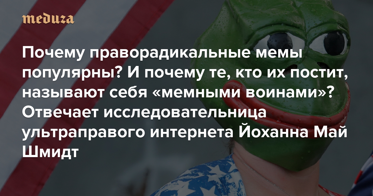 Почему праворадикальные мемы популярны? И почему те, кто их постит, называют себя «мемными воинами»? Мы поговорили об этом с Йоханной Май Шмидт — художницей и исследовательницей ультраправого интернета
