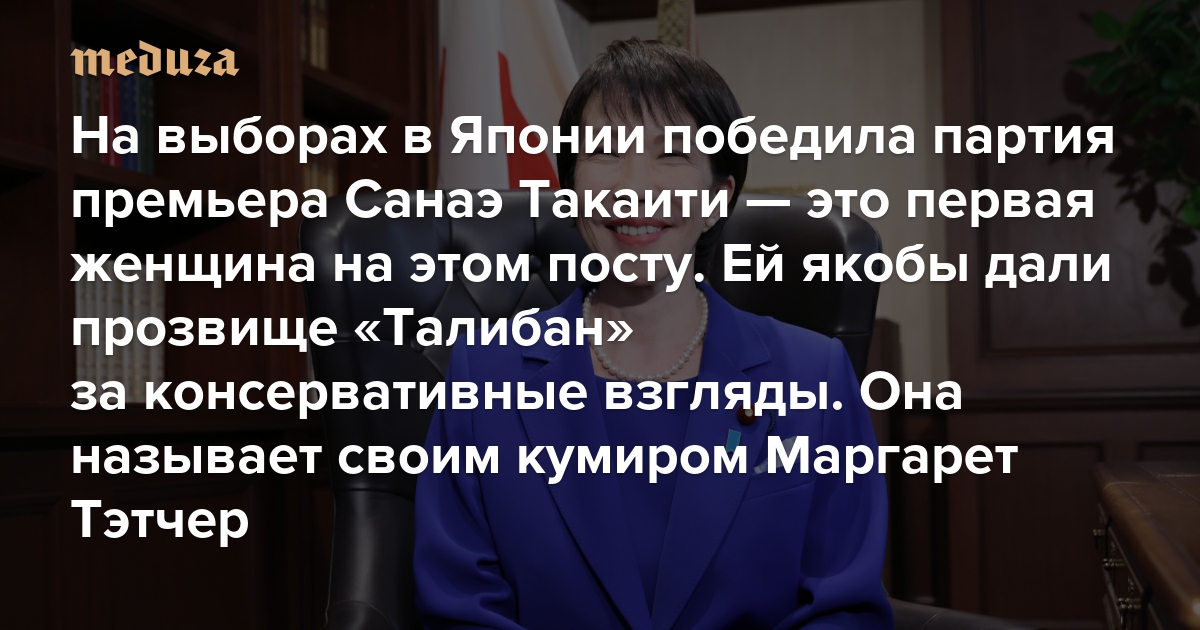 На выборах в Японии победила партия премьер-министра Санаэ Такаити — это первая женщина во главе правительства Она националистка. Ей якобы дали прозвище «Талибан» за консервативные взгляды. Она называет своим кумиром Маргарет Тэтчер
