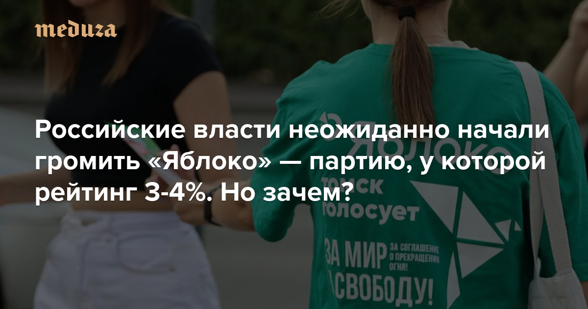 Российские власти неожиданно начали громить «Яблоко» — партию, у которой рейтинг 3-4%. Но зачем? Как выяснила «Медуза», это может быть связано с политическими успехами Бориса Надеждина