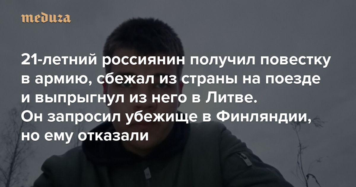 21-летний россиянин получил повестку в армию, сбежал из страны на поезде и выпрыгнул из него в Литве. Он запросил убежище в Финляндии, но ему отказали Теперь ему грозит депортация в Россию