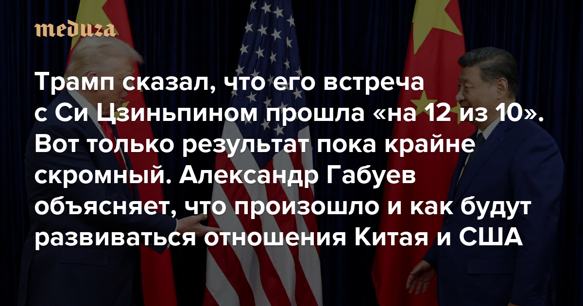 Трамп сказал, что его встреча с Си Цзиньпином прошла «на 12 из 10». Вот только результат пока крайне скромный Александр Габуев анализирует итоги переговоров и объясняет, как будут дальше развиваться отношения Китая и США