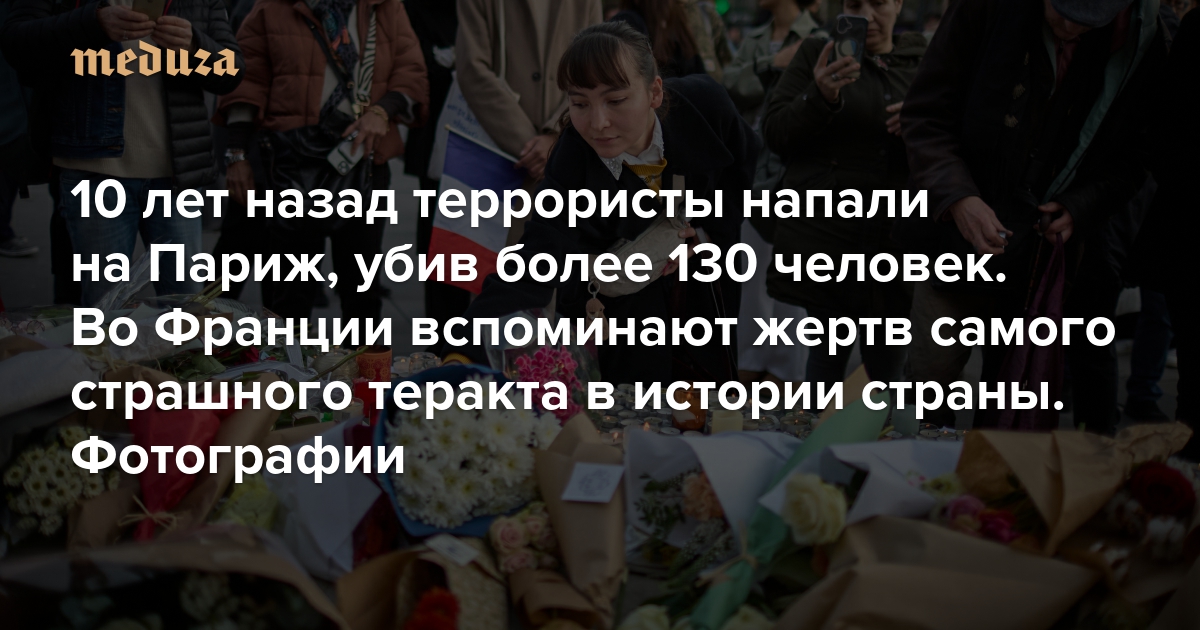 10 лет назад террористы напали на Париж, убив более 130 человек Во Франции вспоминают жертв самого страшного теракта в истории страны. Фотографии