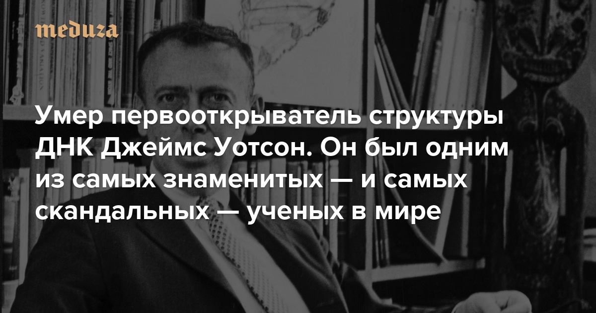 В 2007 года Уотсон угодил в громкий расистский скандал — после чего вел уединенный образ жизни. Многие коллеги отказались от общения с ним, его перестали приглашать на выступления — так что в какой-то момент семье пришлось продать нобелевскую медаль (ее купил и затем вернул обратно миллиардер Алишер Усманов). В 2019-м Уотсона лишили даже символической позиции в Лаборатории Колд-Спринг-Харбор — исследовательском центре, которым он руководил почти полвека. Последние дни ученый провел в хосписе. «Медуза» решила вспомнить некоторые эпизоды из противоречивой биографии Уотсона — человека, который успел и вдохновить многих ученых на новые свершения, и незаслуженно оскорбить огромное число людей.