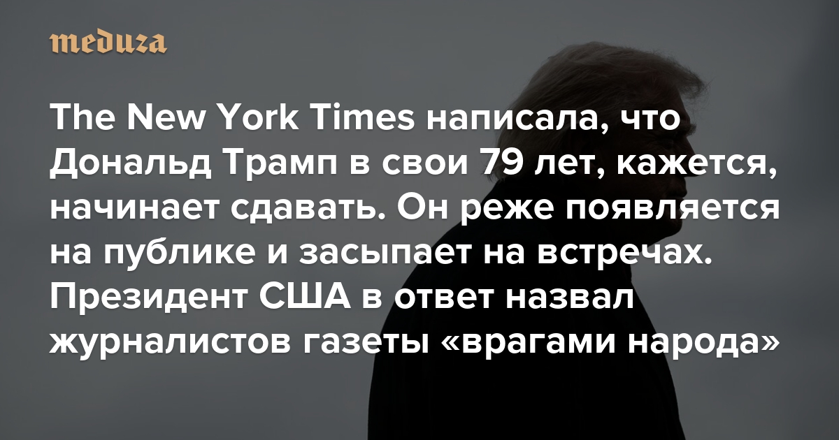 The New York Times написала, что Дональд Трамп в свои 79 лет, кажется, начинает сдавать. Он реже появляется на публике и засыпает на встречах Президент США в ответ назвал журналистов газеты «врагами народа»