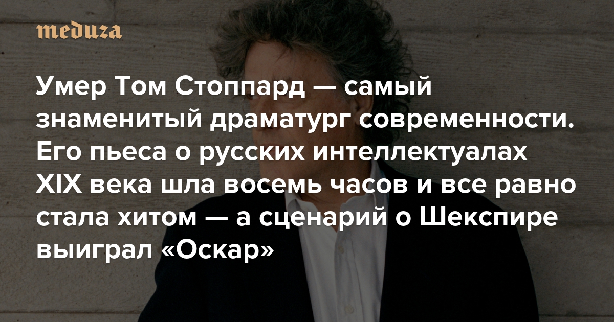 Умер Том Стоппард — самый знаменитый драматург современности Его пьеса о русских интеллектуалах XIX века шла восемь часов и все равно стала хитом — а сценарий о Шекспире выиграл «Оскар»