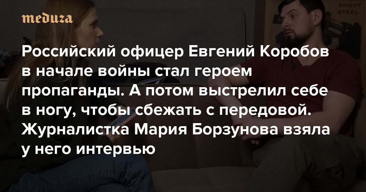 Российский офицер Евгений Коробов в начале войны стал героем пропаганды. А потом выстрелил себе в ногу, чтобы сбежать с передовой Журналистка Мария Борзунова взяла у него интервью