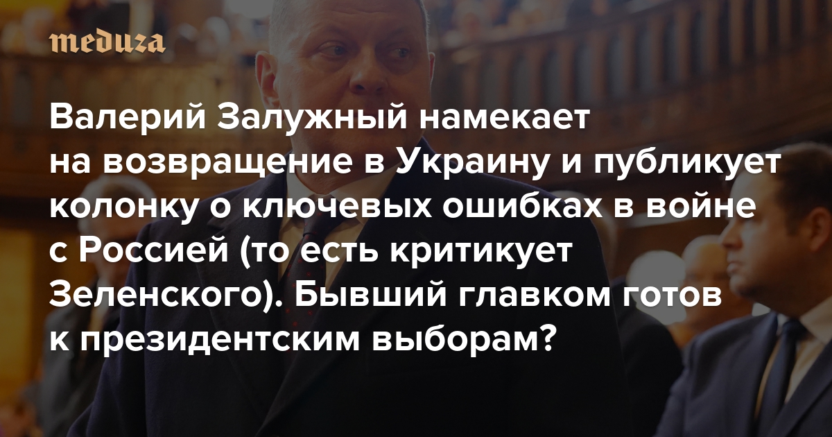 В украинском онлайн-издании Liga.net 29 ноября вышла колонка посла Украины в Лондоне и бывшего главкома ВСУ Валерия Залужного «Политика и война. Реальность против ожиданий», которую он задумал еще в конце 2023 года, то есть до отставки с поста главкома 8 февраля 2024-го. В этой статье он попытался сформулировать военную стратегию на 2024 год, с учетом того, что к исходу 2023-го характер войны полностью изменился. В отличие от прошлых текстов Залужного, посвященных исключительно военным вопросам, новый затрагивает и тему политики. В Украине бывшего главкома ВСУ считают одним из главных кандидатов в президенты на первых послевоенных выборах, хотя официальных заявлений о начале политической карьеры он пока не делал. Однако на фоне политического кризиса в Украине интерес к его фигуре только растет. По просьбе «Медузы» украинский журналист Константин Скоркин рассказывает, о чем написал Валерий Залужный — и есть ли в его колонке намеки на то, что он готовится к президентским выборам.