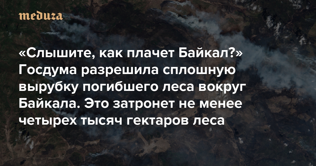 «Слышите, как плачет Байкал?» Госдума разрешила сплошную вырубку погибшего леса вокруг Байкала. Это затронет не менее четырех тысяч гектаров леса (то есть 40 квадратных километров — или почти шесть тысяч футбольных полей)
