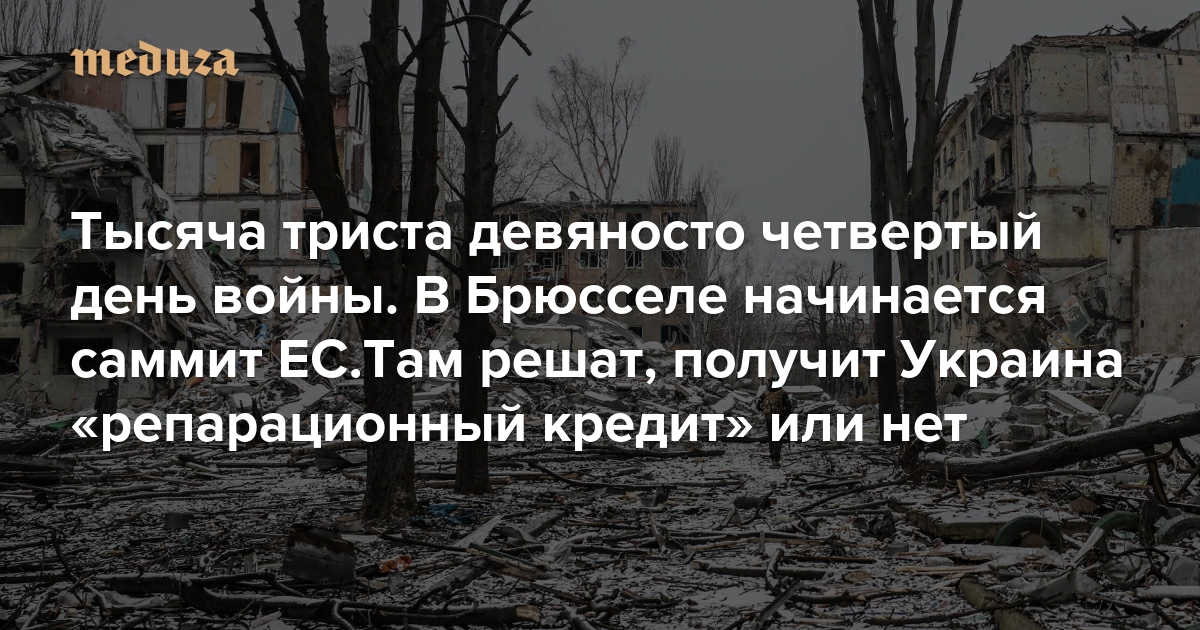 Война Тысяча триста девяносто четвертый день. В Брюсселе начинается саммит ЕС. Там решат, получит Украина «репарационный кредит» или нет
