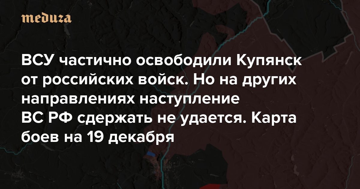 Украинская армия частично освободила Купянск от российских войск. Но на других направлениях наступление ВС РФ сдержать не удается Где кризис обороны ВСУ особенно острый? Карта боев на 19 декабря
