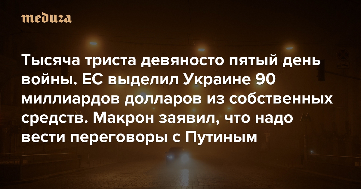 Война Тысяча триста девяносто пятый день. ЕС выделил Украине 90 миллиардов долларов из собственных средств. Макрон заявил, что надо вести переговоры с Путиным