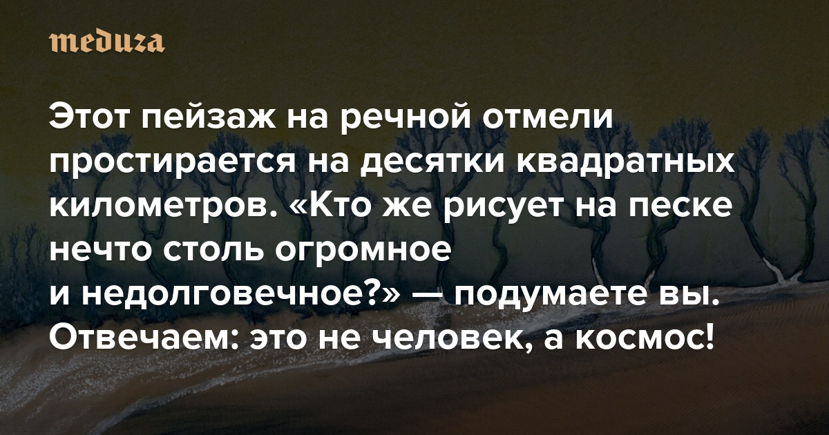 Этот удивительный пейзаж на речной отмели простирается на десятки квадратных километров. «Кто же рисует на песке нечто столь огромное и недолговечное?» — подумаете вы. Отвечаем: это не человек, а космос!