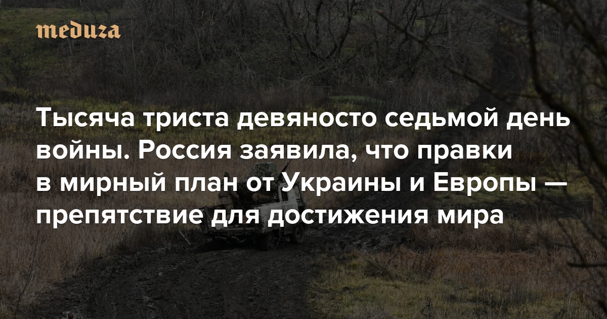 Война Тысяча триста девяносто седьмой день. Россия заявила, что правки в мирный план от Украины и Европы — препятствие для достижения мира