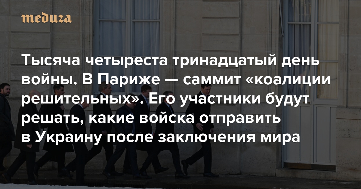 Война Тысяча четыреста тринадцатый день. В Париже — саммит «коалиции решительных». Его участники будут решать, какие войска отправить в Украину после заключения мира