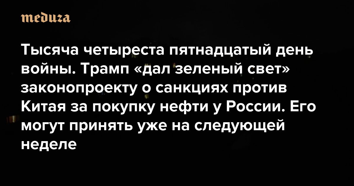 Война Тысяча четыреста пятнадцатый день. Трамп «дал зеленый свет» законопроекту о санкциях против Китая за покупку нефти у России. Его могут принять уже на следующей неделе