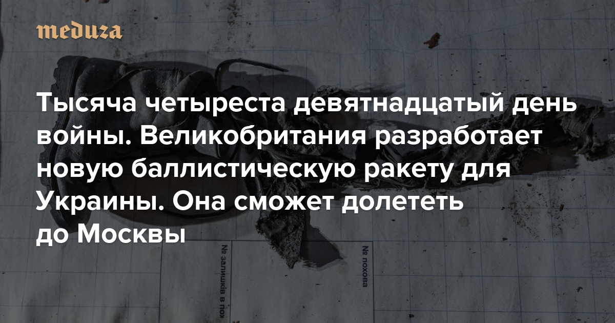 Война Тысяча четыреста девятнадцатый день. Великобритания разработает новую баллистическую ракету для Украины. Она сможет долететь до Москвы