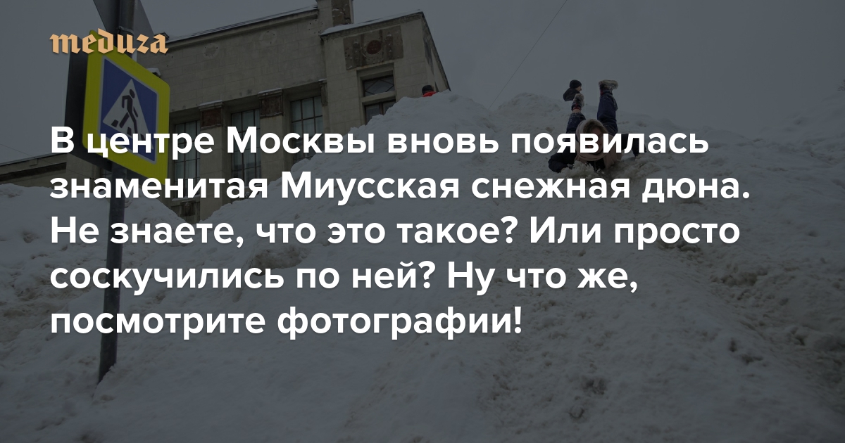После обильных снегопадов, вызванных циклоном «Фрэнсис», в Тверском районе Москвы на Миусской площади неподалеку от Белорусского вокзала вновь образовалась огромная гора снега. В народе ее уже давно прозвали Миусской снежной дюной. Впервые гора появилась тут в 2018 году — в особо снежные зимы коммунальные службы специально перекрывают проезжую часть между Миусской площадью и улицей Александра Невского и свозят туда, как в перевалочный пункт, снег с окрестных улиц. Для местных жителей дюна стала чем-то вроде городского мема. Люди приходят сюда, чтобы покататься с горы или просто сфотографироваться на ее фоне. Горе заводили аккаунты в соцсетях, водружали на ней собственную информационную табличку «Знаменитая Миусская снежная дюна», отмечали ее день рождения (так называемый День дюны приходится на 18 февраля). До нынешней зимы горы на Миусской площади не было пять лет — с 2021 года.