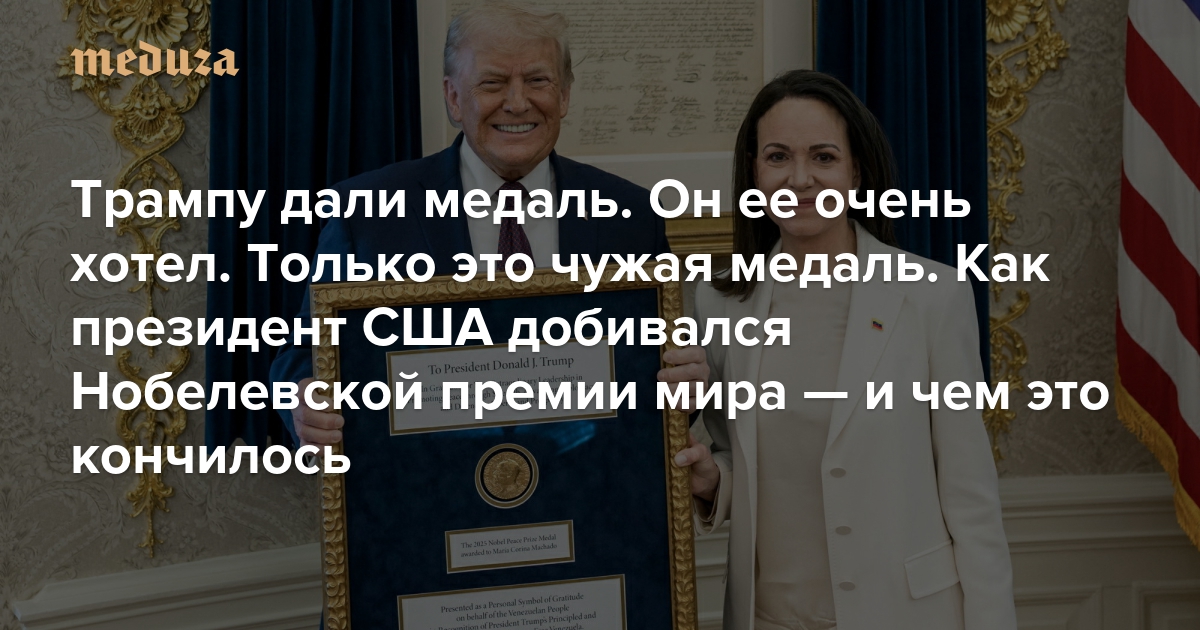 Трампу дали медаль. Он ее очень хотел. Только это чужая медаль Как президент США добивался Нобелевской премии мира — и чем это кончилось