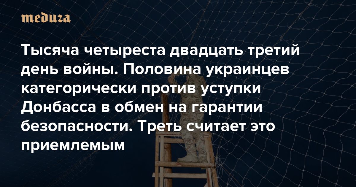Война Тысяча четыреста двадцать третий день. Половина украинцев категорически против уступки Донбасса в обмен на гарантии безопасности. Треть считает это приемлемым