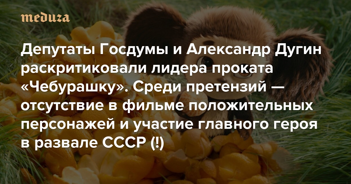 «Нужно забыть о том, что думает народ» Депутаты Госдумы и Александр Дугин раскритиковали лидера проката «Чебурашку». Среди претензий — отсутствие в фильме положительных персонажей и участие главного героя в развале СССР (!)
