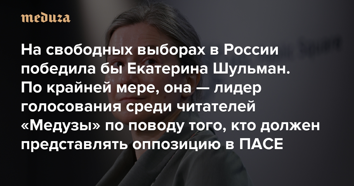 На свободных выборах в России победила бы Екатерина Шульман По крайней мере, она — лидер голосования среди читателей «Медузы» по поводу того, кто должен представлять оппозицию в ПАСЕ. Есть и другие важные выводы
